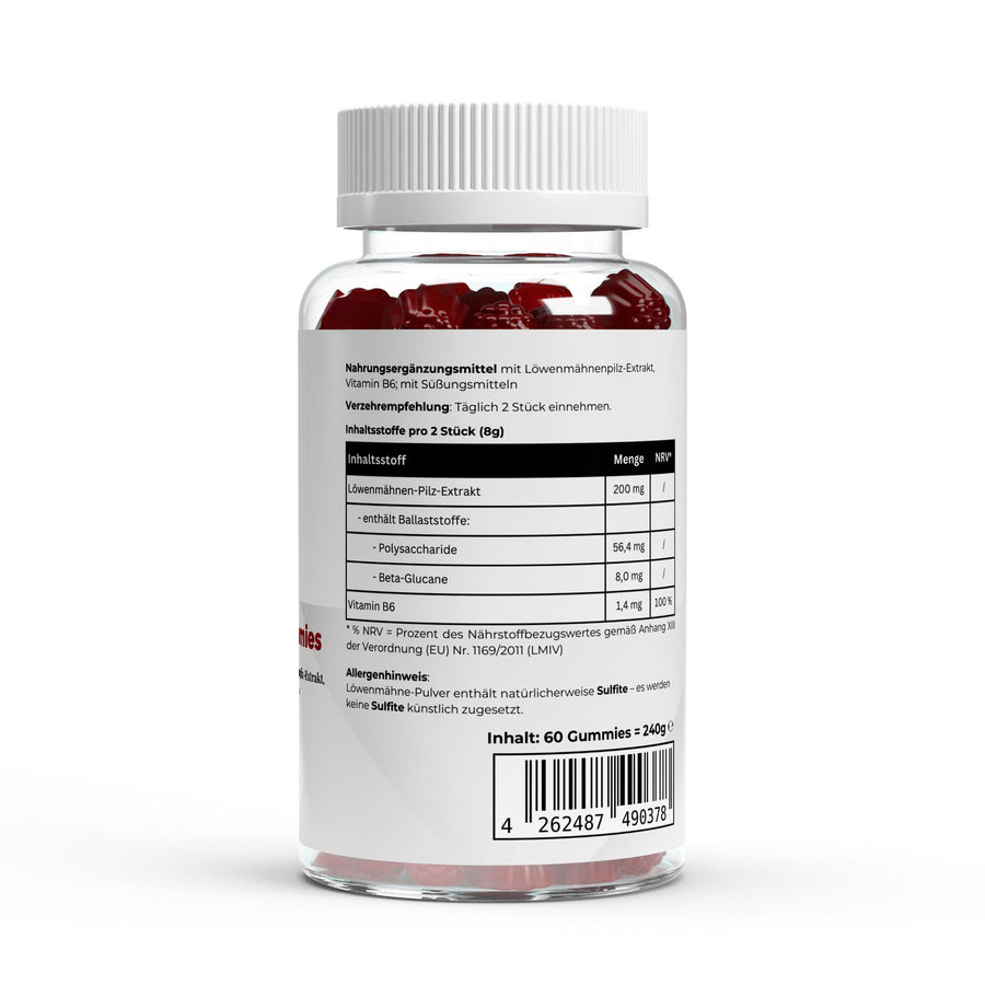 Löwenmähne + Vitamin B6 Gummies - 60 Stk.